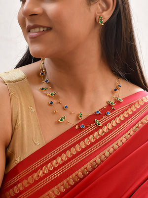 Premium Handcrafted 2 Layered Kemp Mango Necklace Set in Green & Blue Kemp Stones