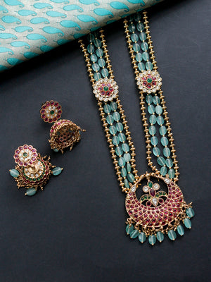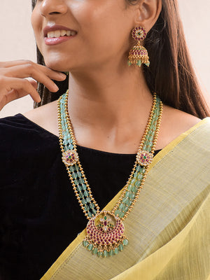 Premium Kempu Haaram with Green Onyx, Kundan Stones, and Gold Detailing