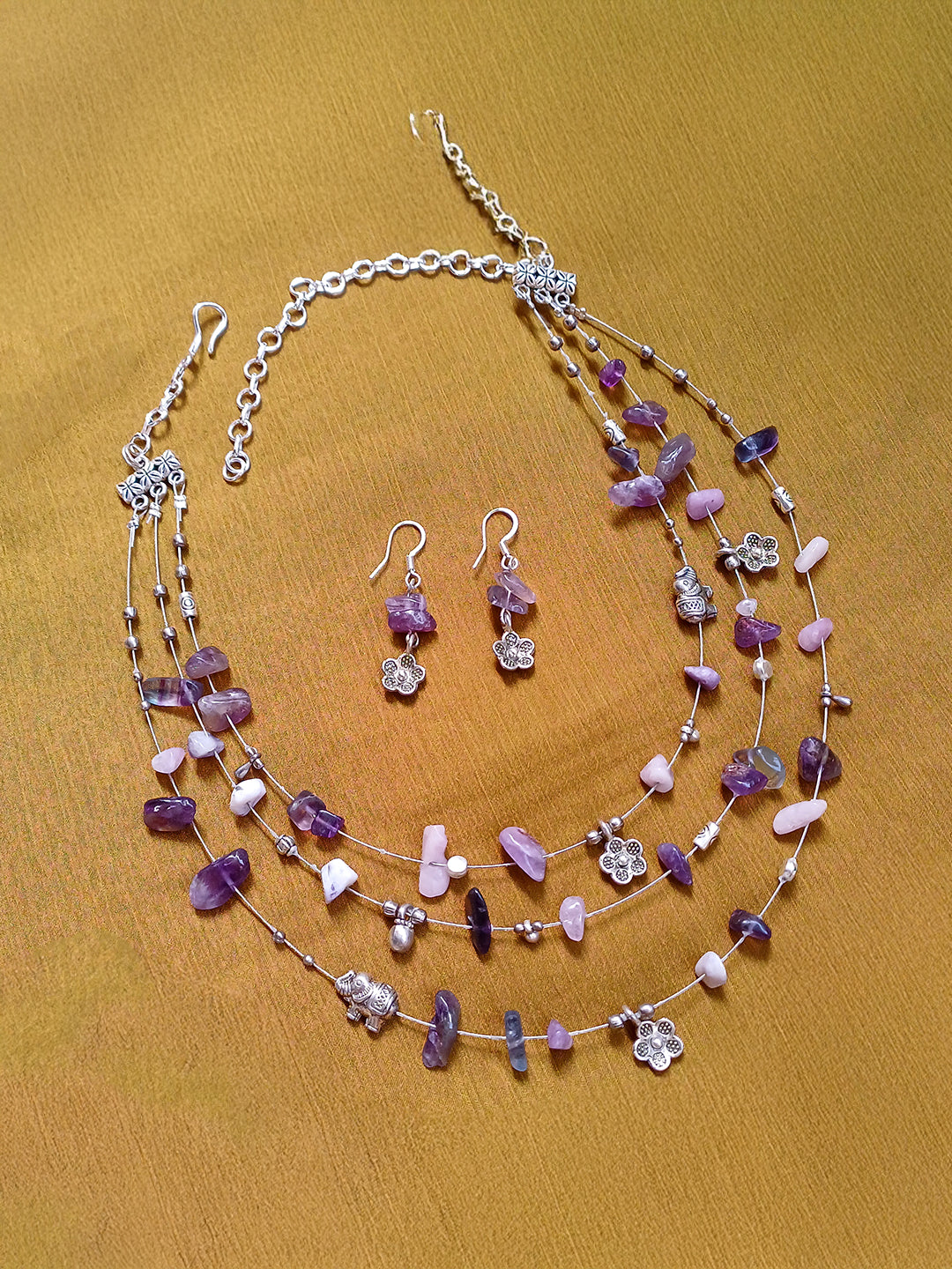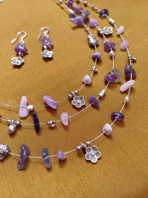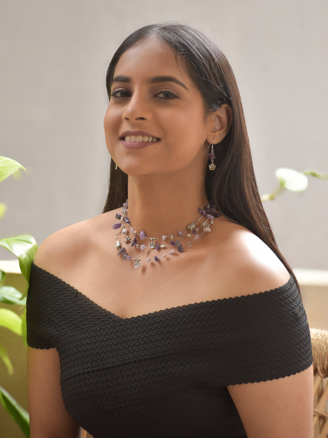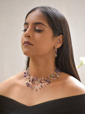 AmoraGleam – Multi-Layer Purple Amethyst Agate Gemstone Necklace with German Silver Motifs
