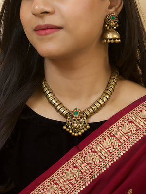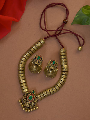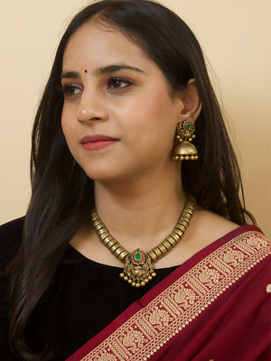 Semi cylindrical peacock design contemporary handmade terracotta necklace set