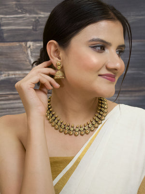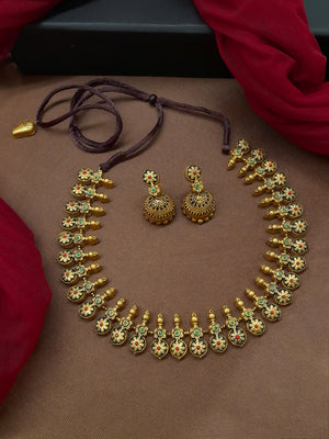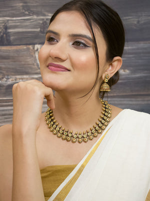 Shonakamala — Antique Gold Toned Red And Black Color Floral Design Motifs Choker Handmade Terracotta Necklace Set - kantara