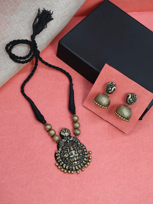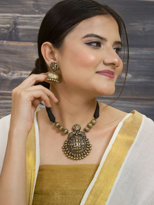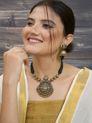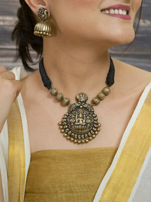 Shreesutra — Designer Handmade Gold Plated Lakshmi Design Pendant Choker Handmade Terracotta Necklace Set