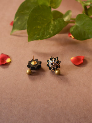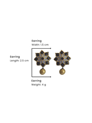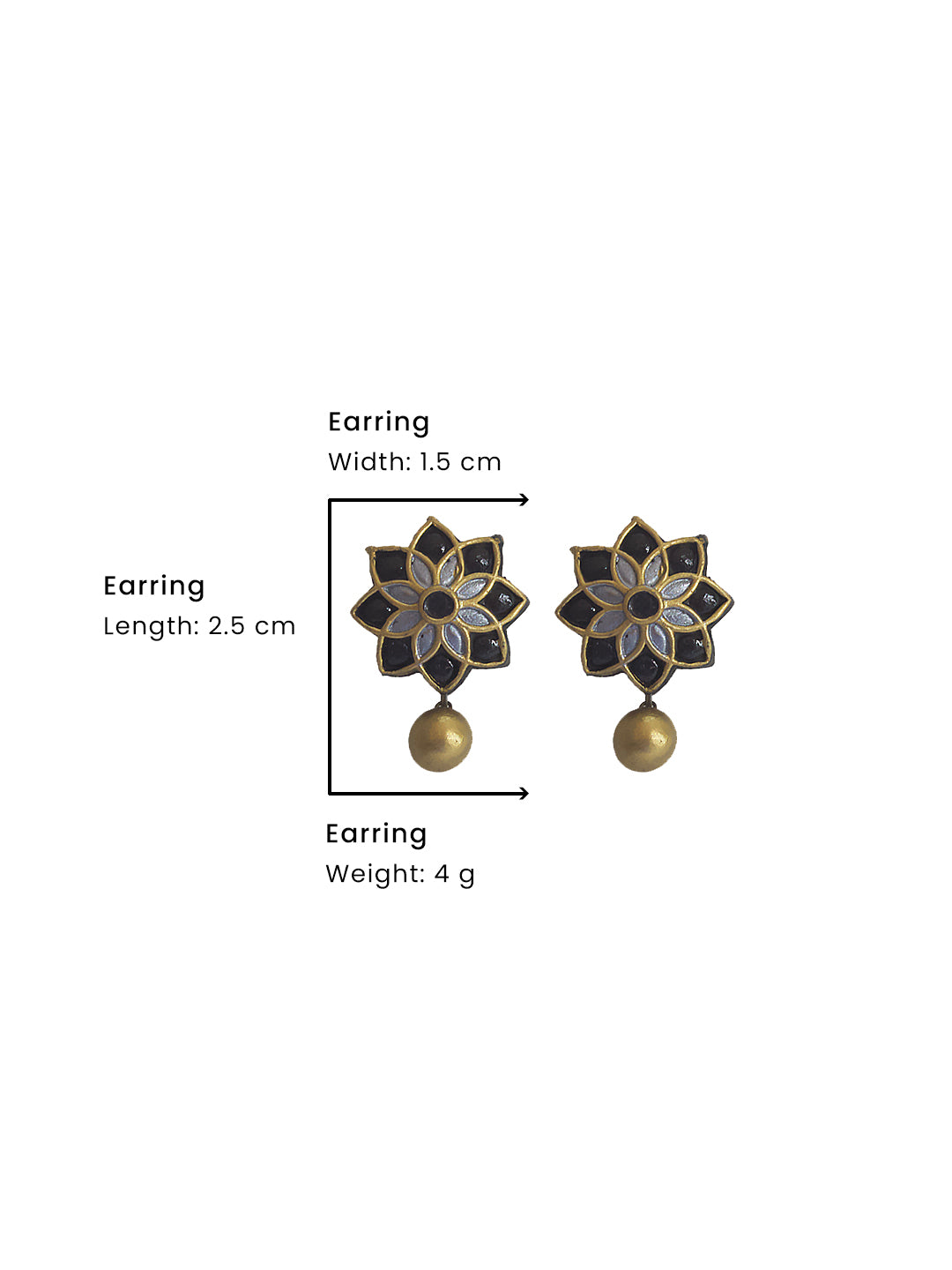 Shyamalika — Silver Black Antique Gold Floral Mandala Work Handmade Terracotta Stud Earrings