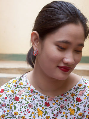 Spiral Design Red Stud With Stones Earring