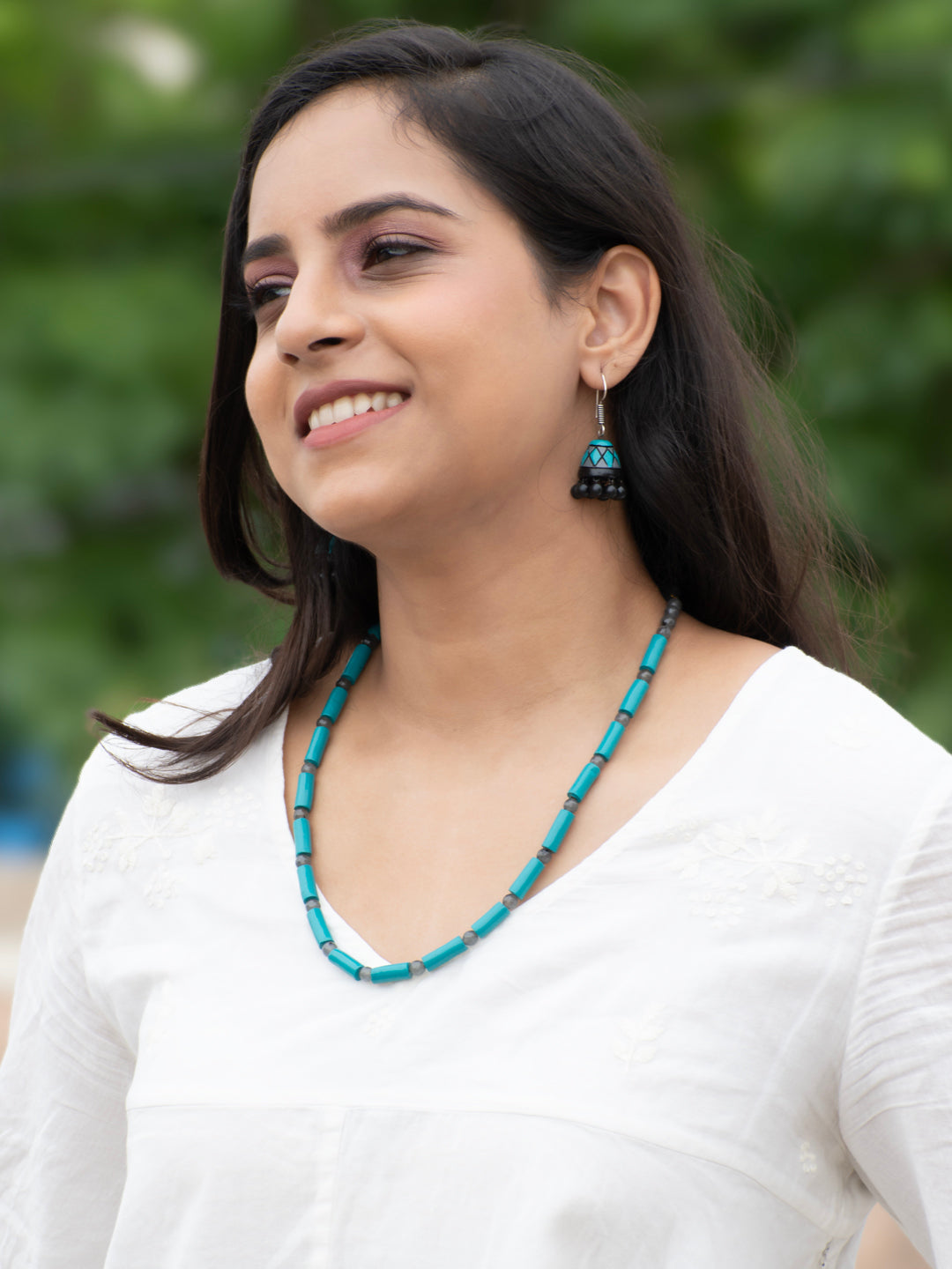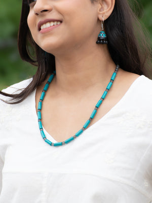 Teal and Black Colour Minimalistic Tubular Design Handmade Terracotta Necklace Set