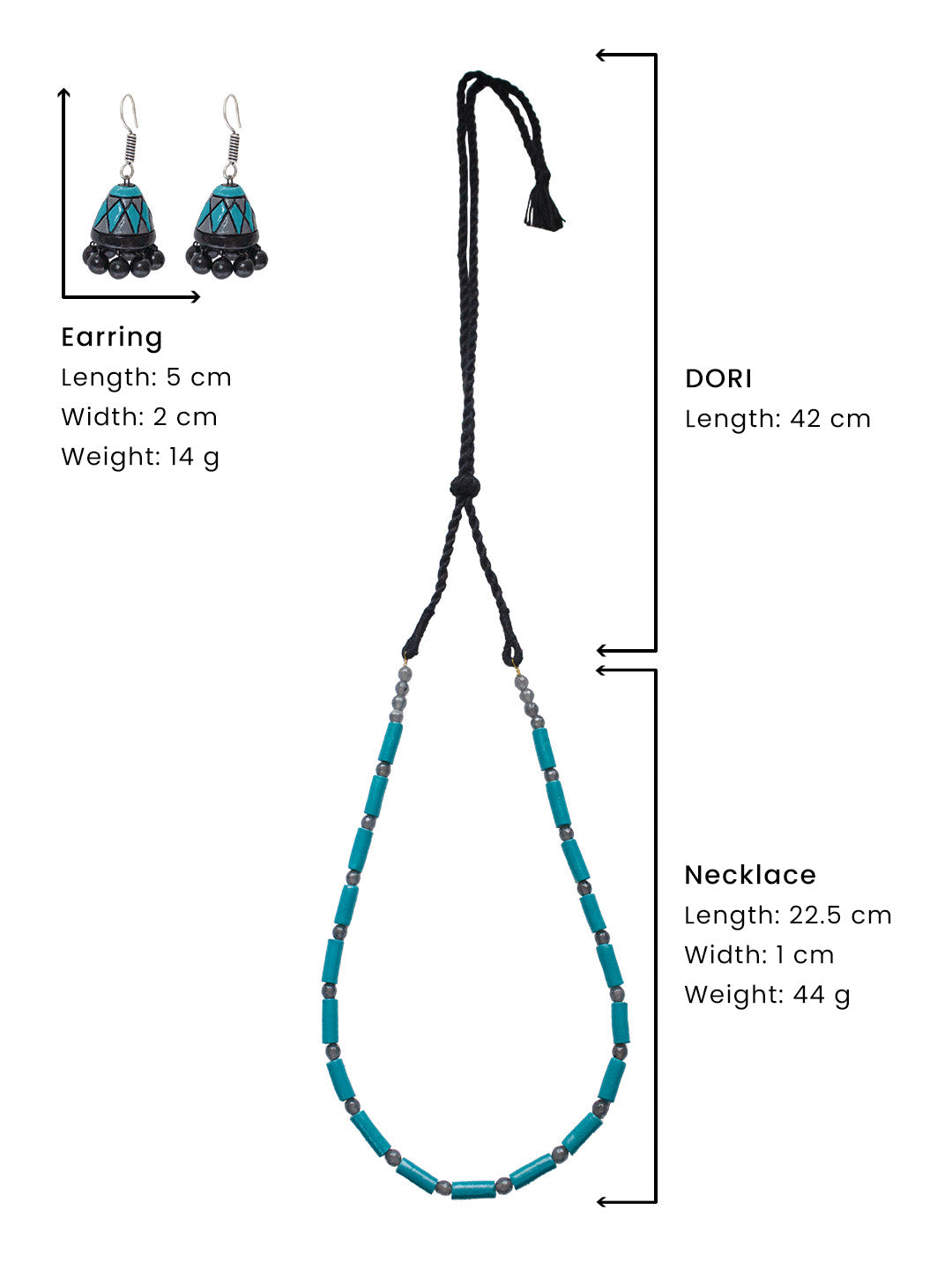 Home Teal and Black Colour Minimalistic Tubular Design Handmade Terracotta Necklace Set