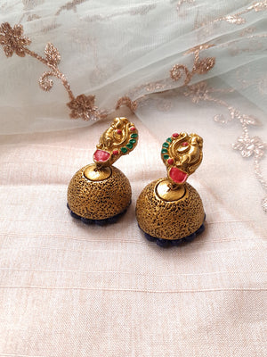 Terracotta Antique Gold Temple Gopalkrishna Pendant Necklace with Double Bead Chain & Jhumka Earrings