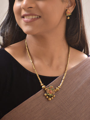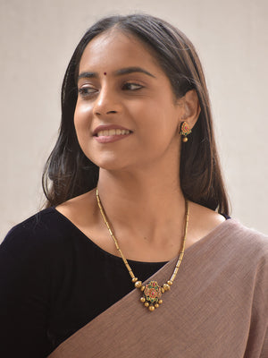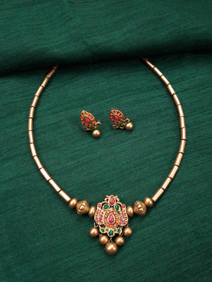 Terracotta Bloom Charm Necklace Set With Jhumkas