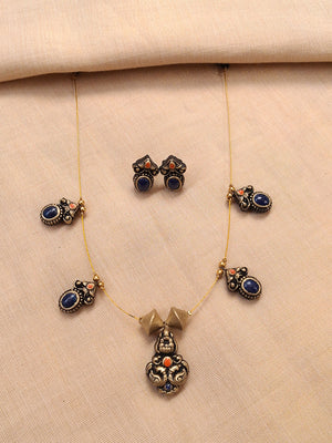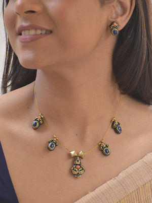 Terracotta Blue Regal Drop Necklace Set With Studs