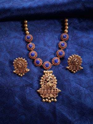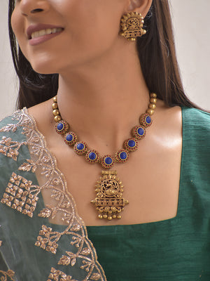 Terracotta Blue Stone Design Necklace with Peacock Motif Pendant