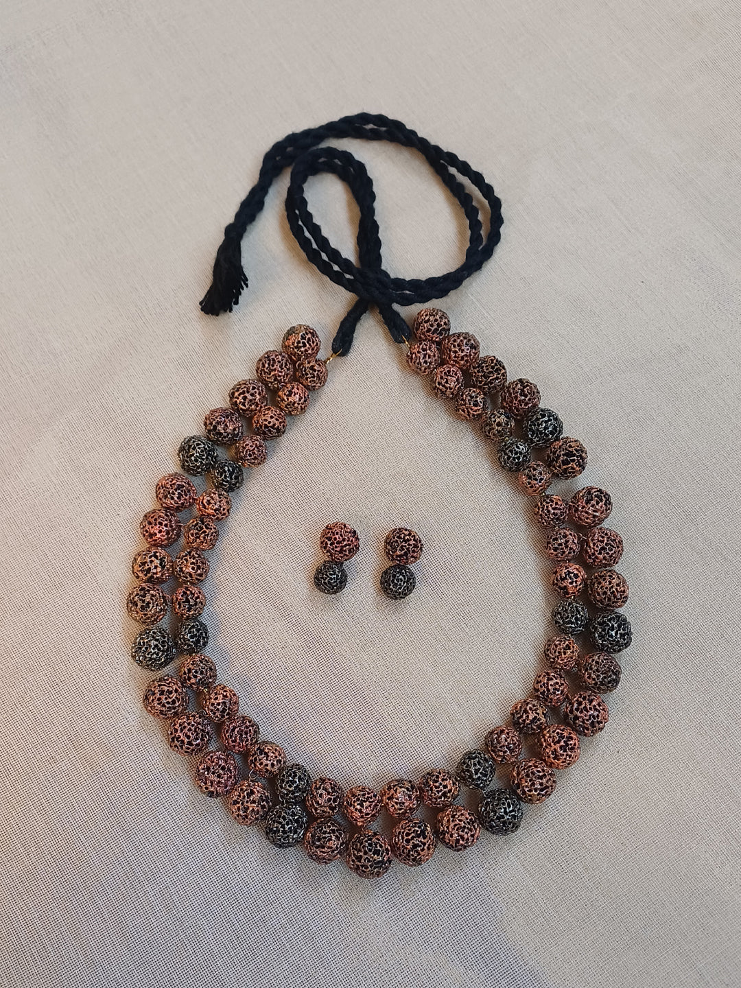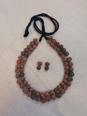 Terracotta Brown Textured Bead Necklace with Matching Earrings