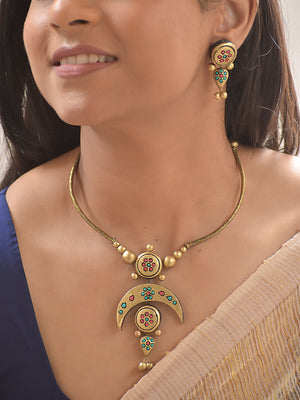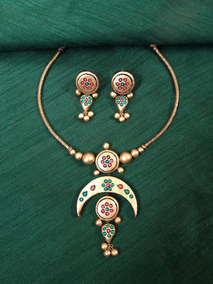 Home Terracotta Crescent Charm Necklace Set With Jhumkas