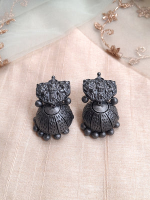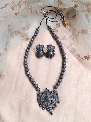 Terracotta Oxidized Silver Bead Necklace with Temple Goddess Pendant