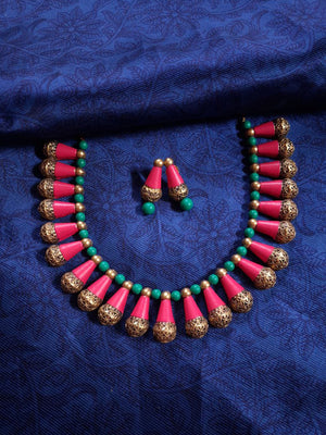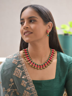 Terracotta Red Cone Bead Necklace with Green Accents