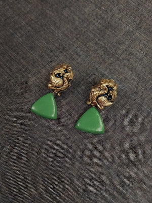 Terracotta Red Triangular Beads Necklace with Peacock Coin Pendant & Matching Earrings