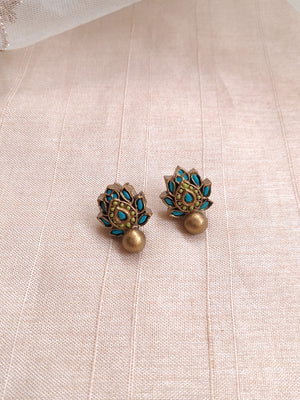 Terracotta Teardrop Floral Pendant Necklace with Matching Stud Earrings