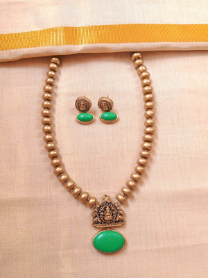 Torquoise Aura Terracotta Lakshmi Necklace Set With Jhumkas