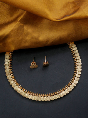 Kanchana - Traditional Gold-Plated Kasu Mala Coin Necklace and Earring Set