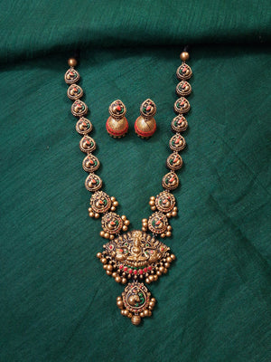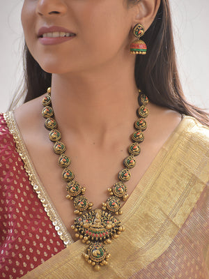 Home Vilasini – Terracotta Lakshmi Peacock Temple Necklace Set With Jhumkas