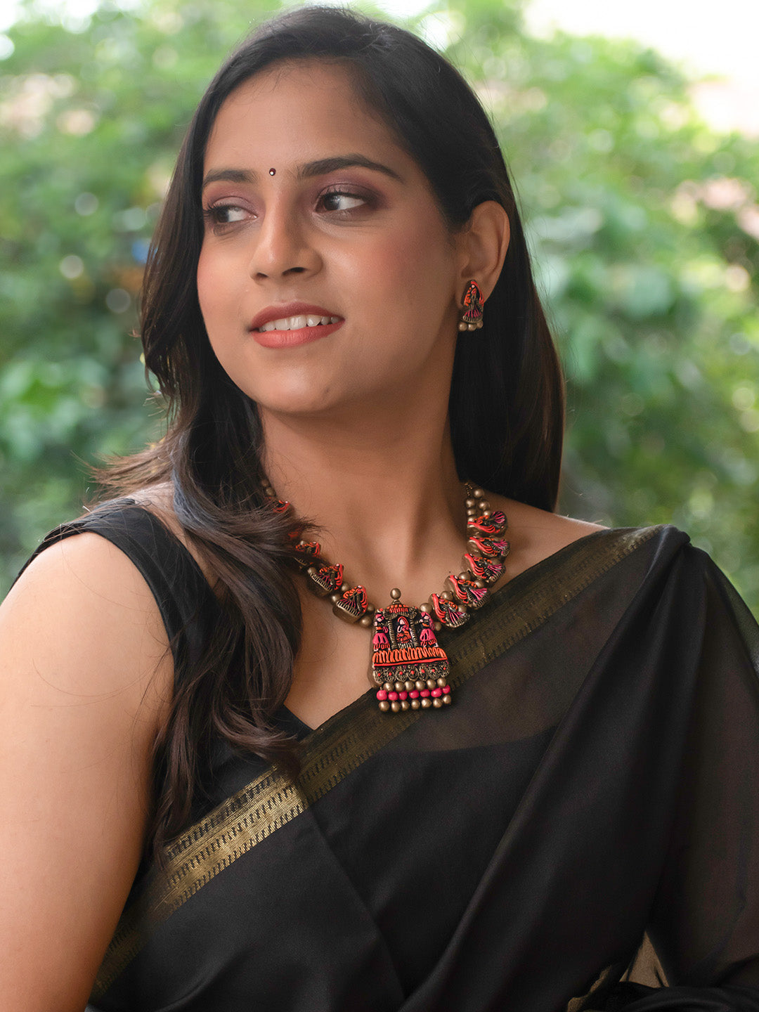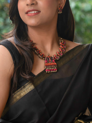 Vivid Dancers Orange Pink Gold Handmade Terracotta Necklace Set