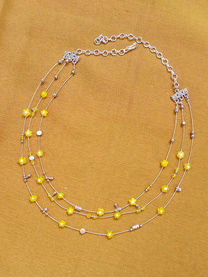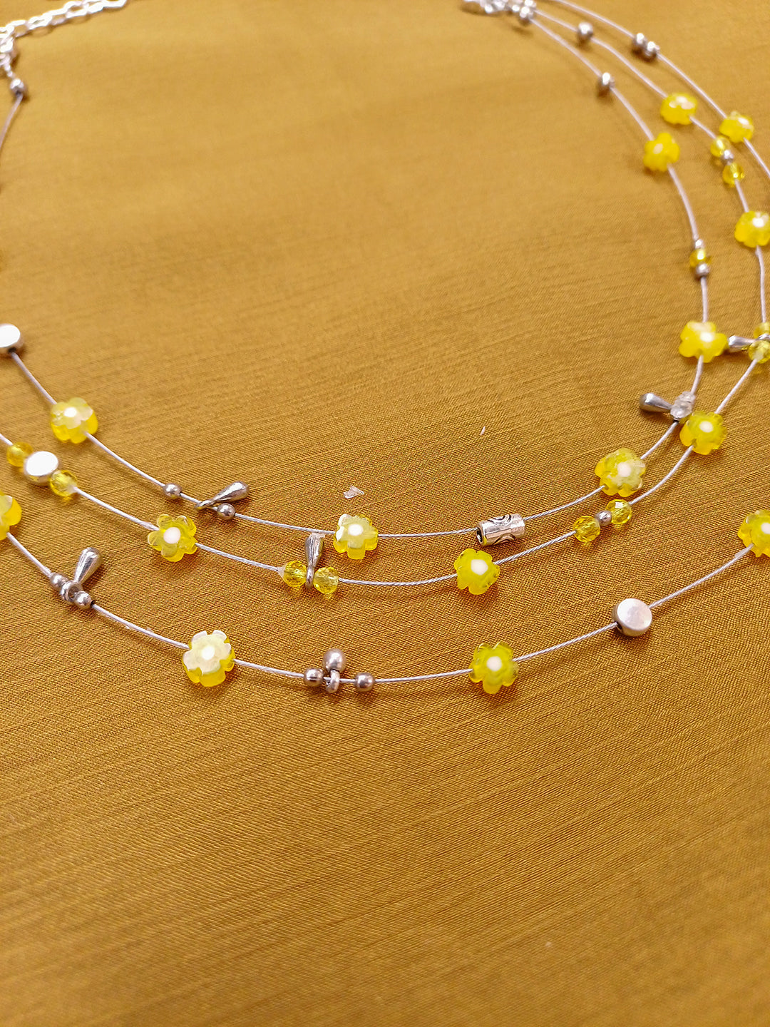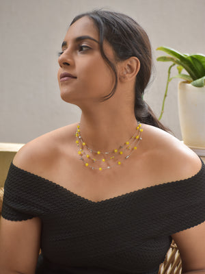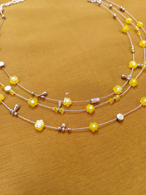 SunBloom – Yellow Floral Beaded Multi-Layer Necklace with German Silver Accents