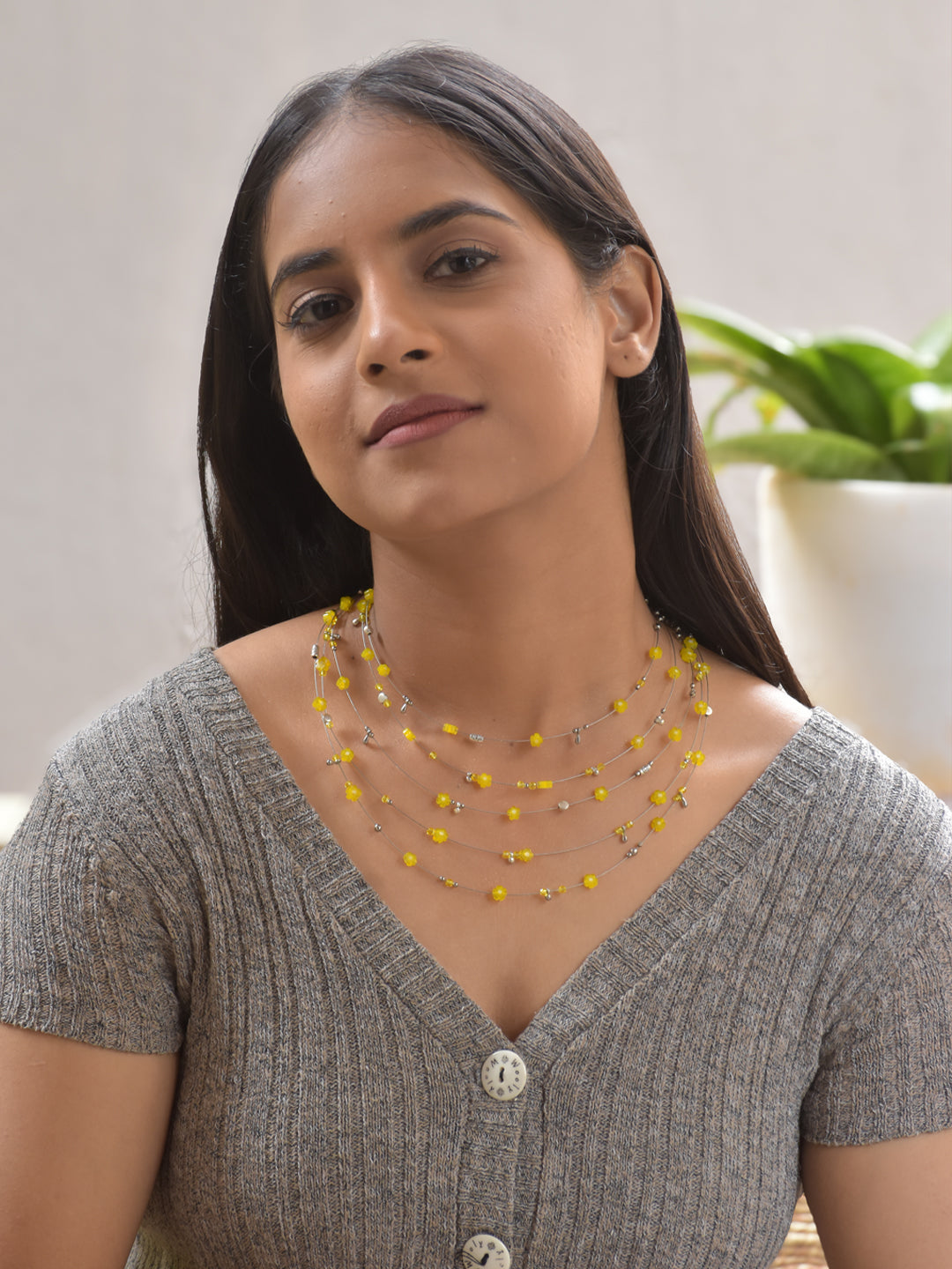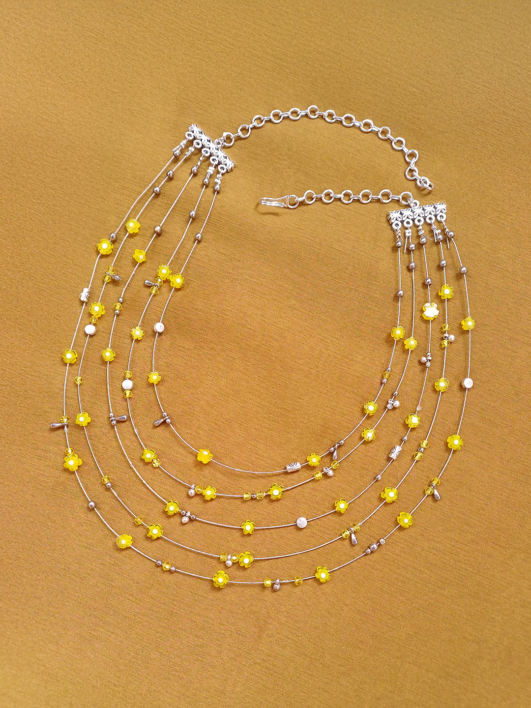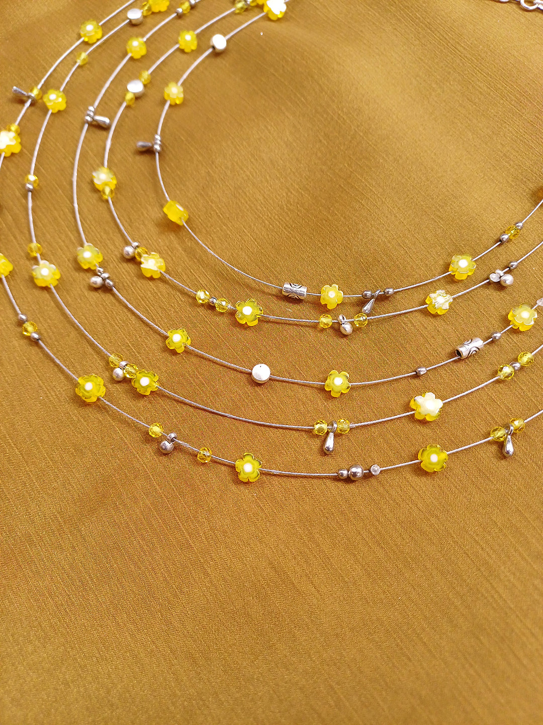 SunPetal – Multi-Layer Yellow Floral Beaded Necklace with German Silver Accents