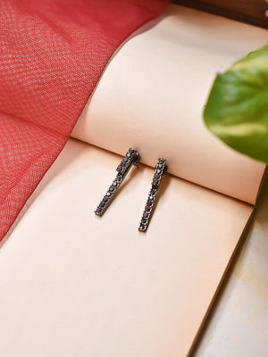 Antique Silver Plated Geometric Design Stud Earring