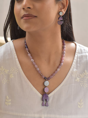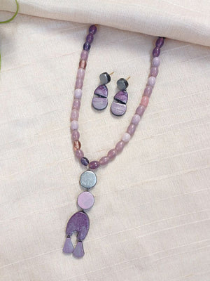 Abstract Tribal Terracotta Necklace Set – Pink & Purple Art Form Pendant Earrings