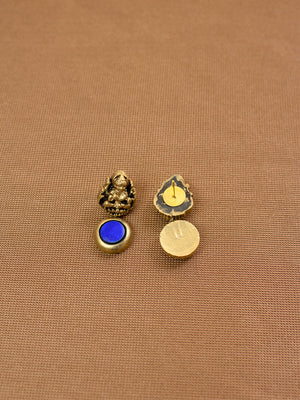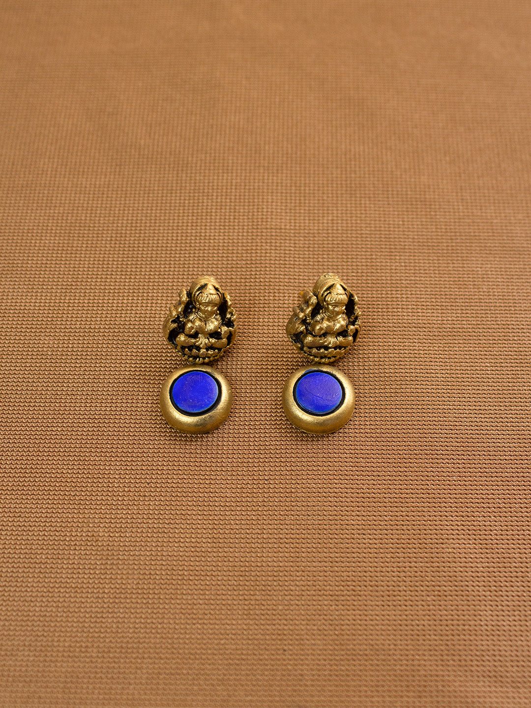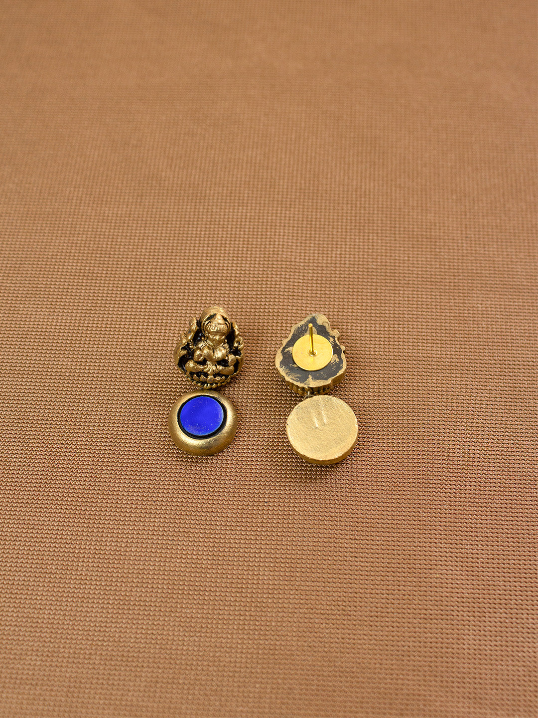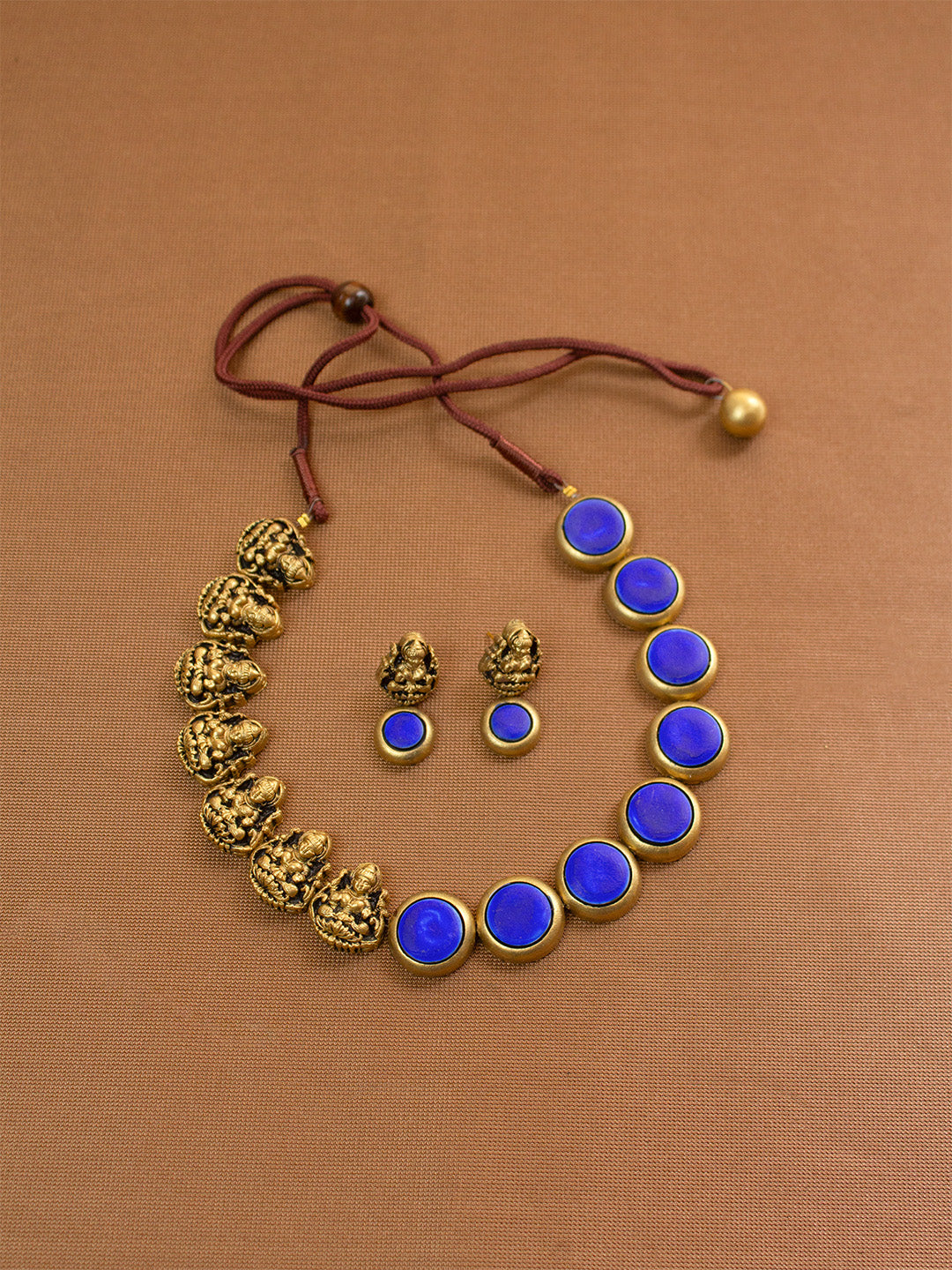 Antique Gold and Blue Coin and Lakshmi Design Handmade Terracotta Necklace Set