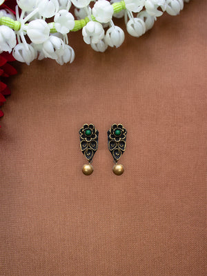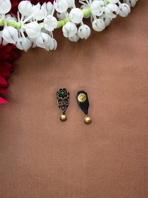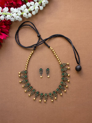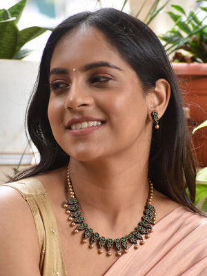 Antique Gold Black Green Leaf Design Handmade Terracotta Necklace Set