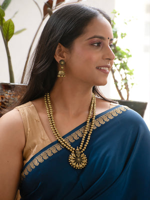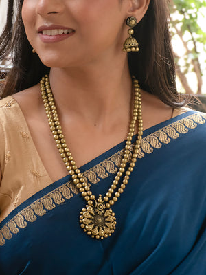 Antique Gold Blooming Flower Design Handmade Terracotta Necklace Set