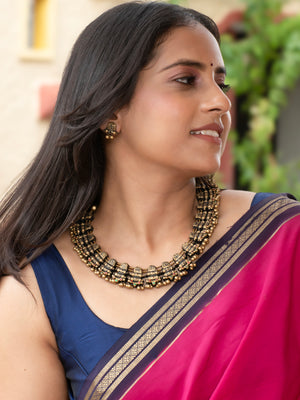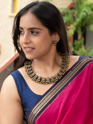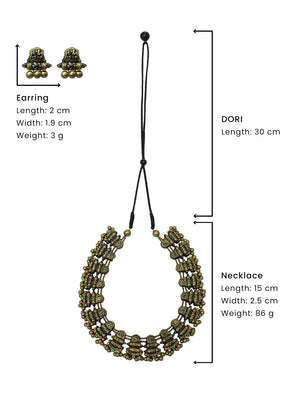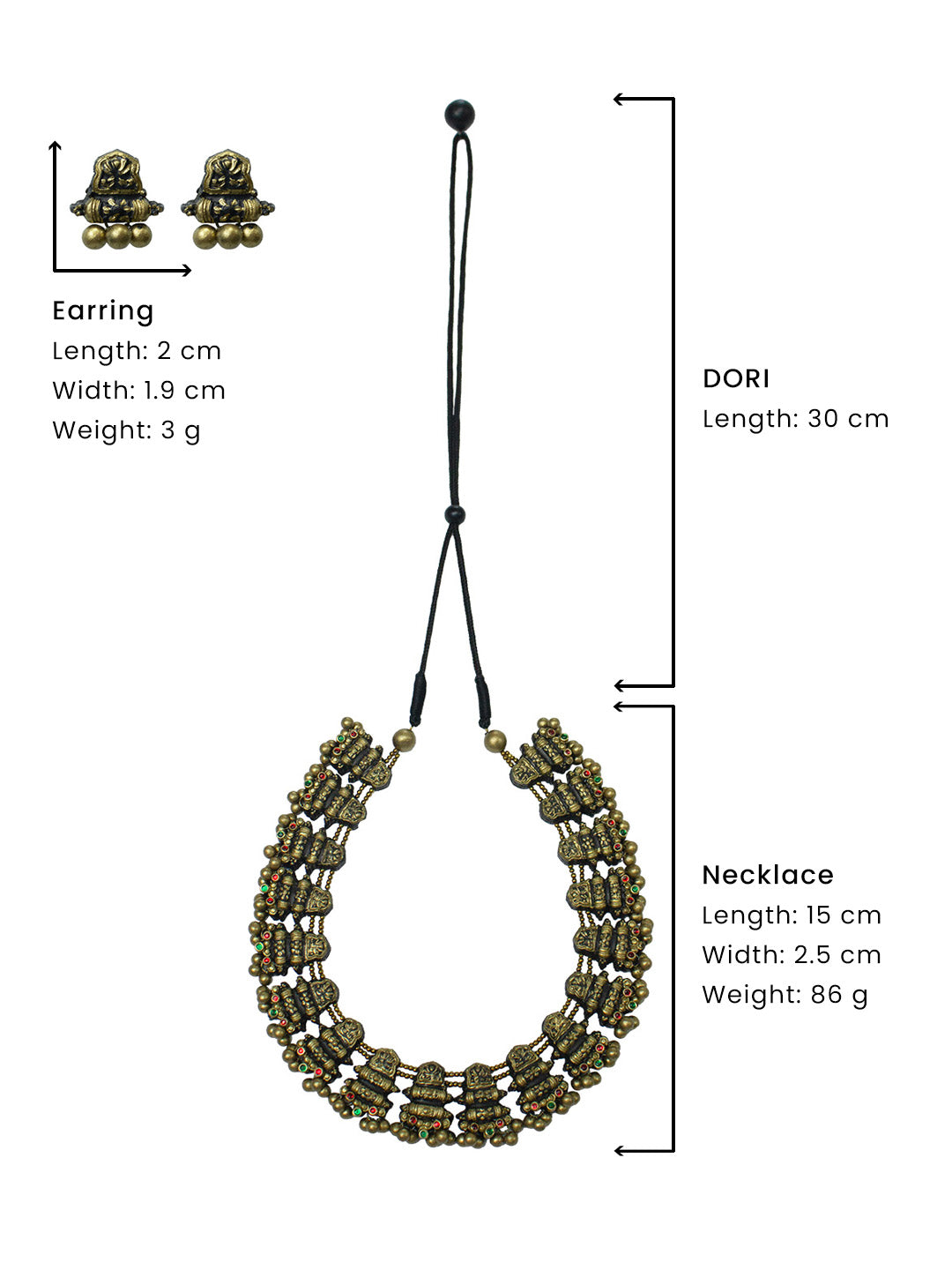 Antique Gold Cylindrical Tube Step Design Red Green Kundan Handmade Terracotta Necklace Set