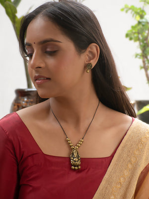 Antique Gold Ganesha Pendant Minimalistic Handmade Terracotta Necklace Set