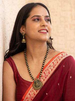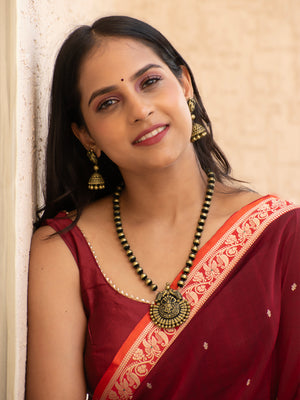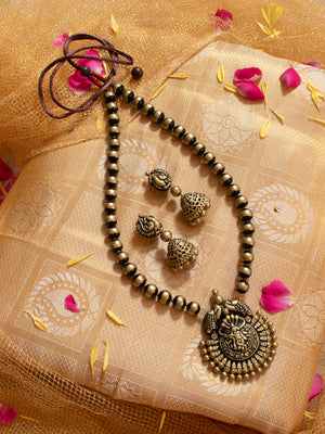 Antique Gold Gopalkrishna Peacock Pendant Mala Design Handmade Terracotta Necklace Set