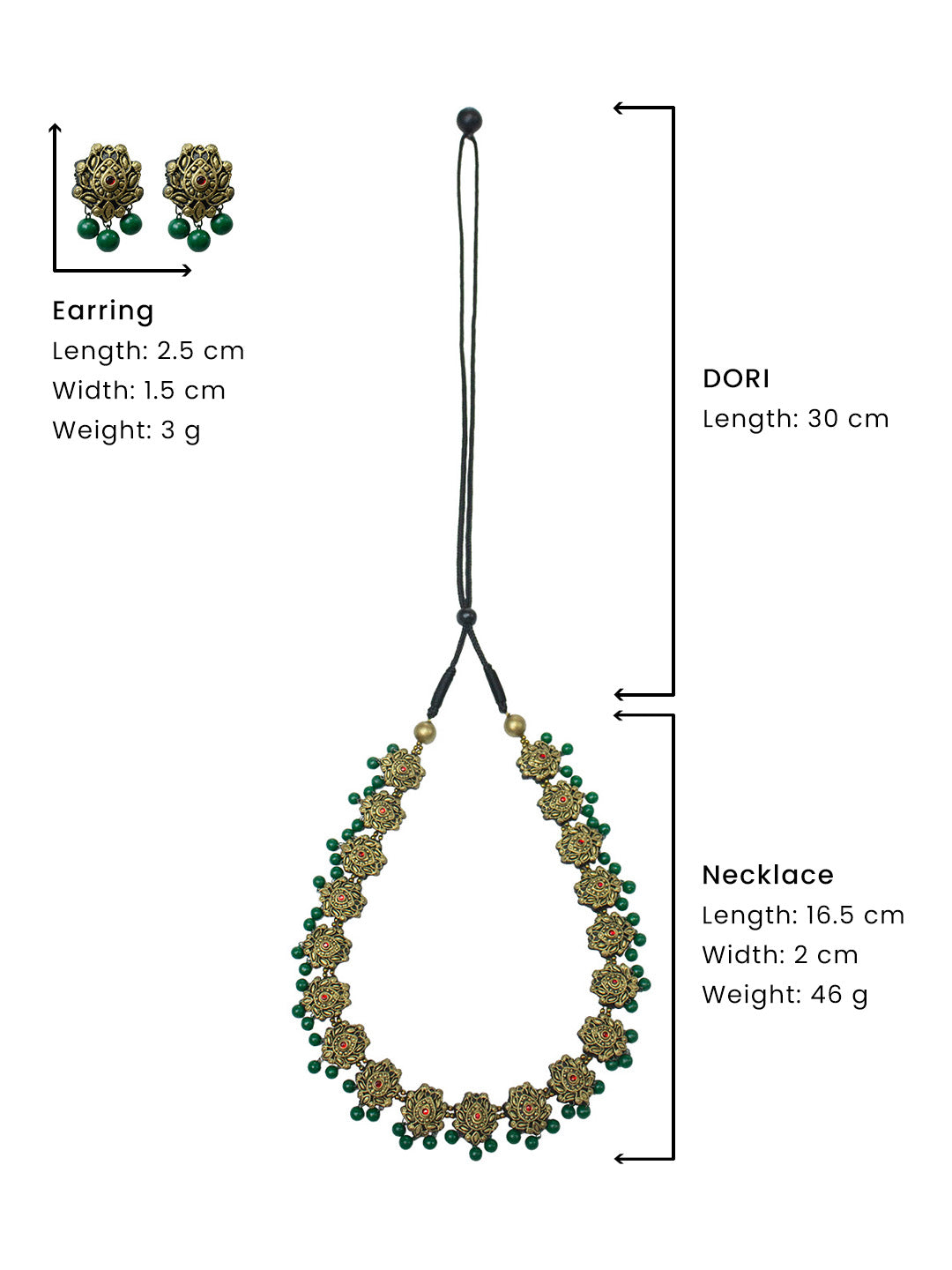 Padmavati - Antique Gold Green floral drops Handmade Terracotta Necklace Set