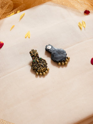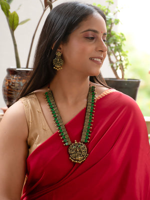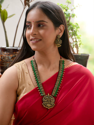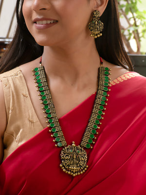 Antique Gold Green Lakshmi Design Circular Pattern Haram Style Handmade Terracotta Necklace Set