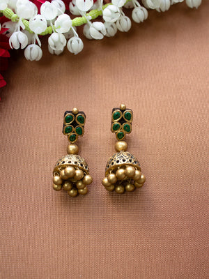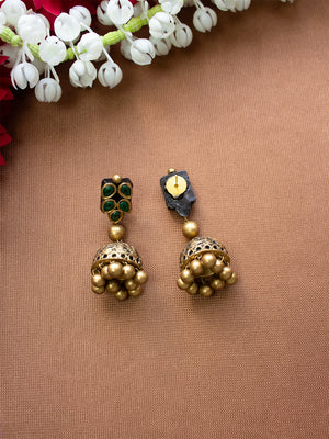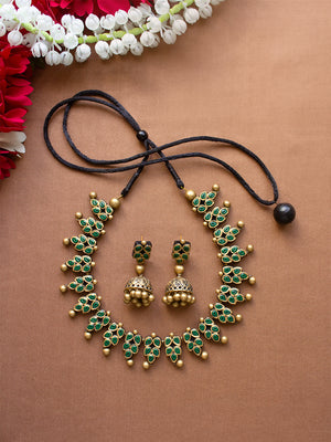 Antique Gold and Green Leaf Design Handmade Terracotta Necklace Set