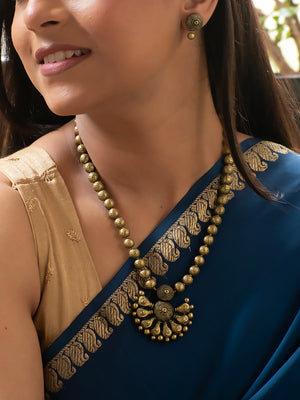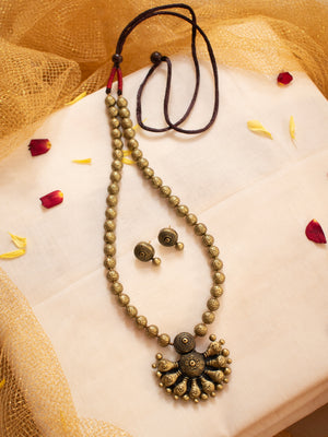 Antique Gold Half Moon Design Handmade Terracotta Necklace Set