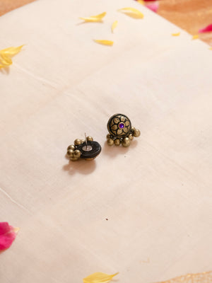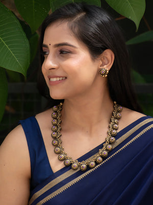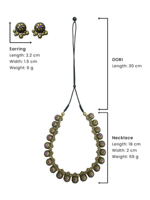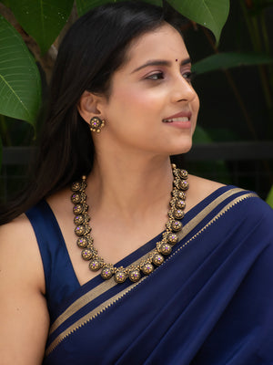 Antique Gold Lavender Kundan Stone Floral Circular Design Handmade Terracotta Necklace Set