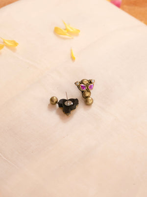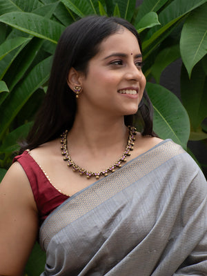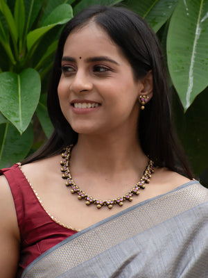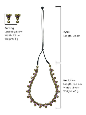Antique Gold Light Purple Kundan Leaf Circular Minimalistic Design Handmade Terracotta Necklace Set