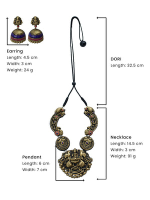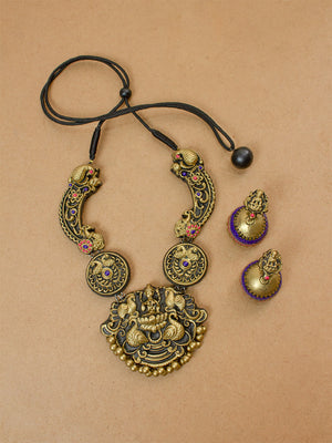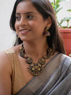 Antique Gold Navy and Pink Lakshmi Peacock Design Handmade Terracotta Necklace Set