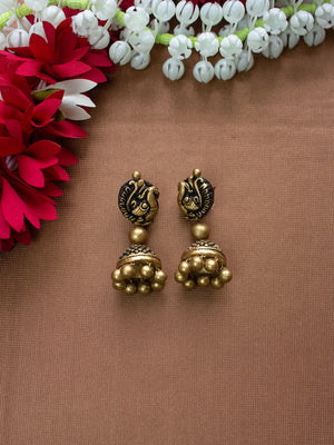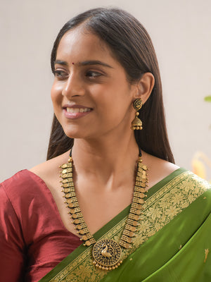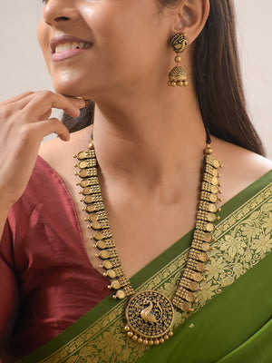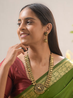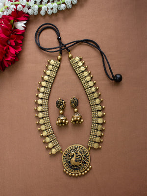 Antique Gold Peacock Coin Design Handmade Terracotta Necklace Set