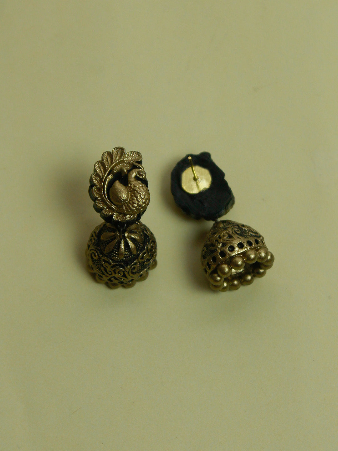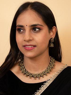 Antique Gold Peacock Design Handmade Terracotta Necklace Set