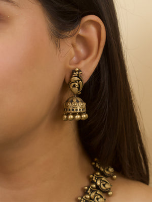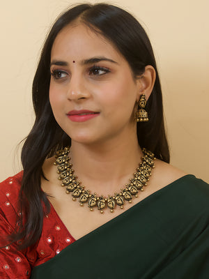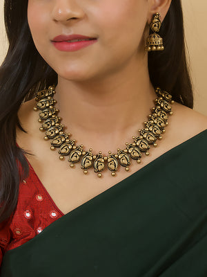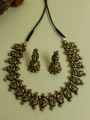Antique Gold Peacock Design Handmade Terracotta Necklace Set