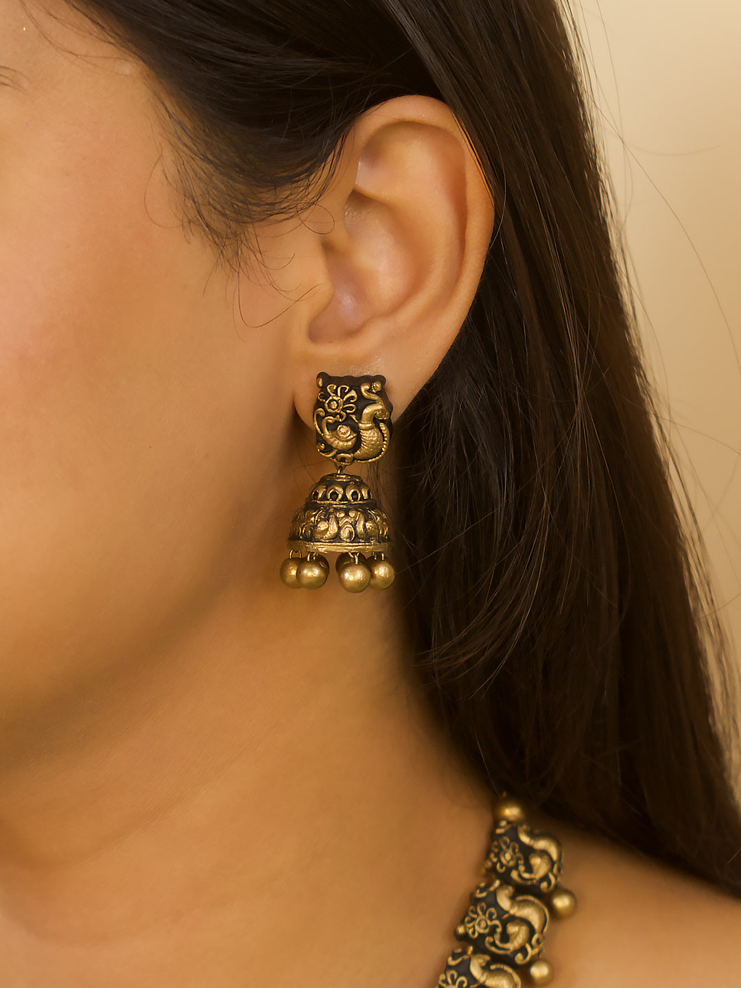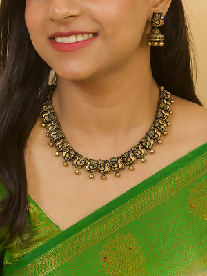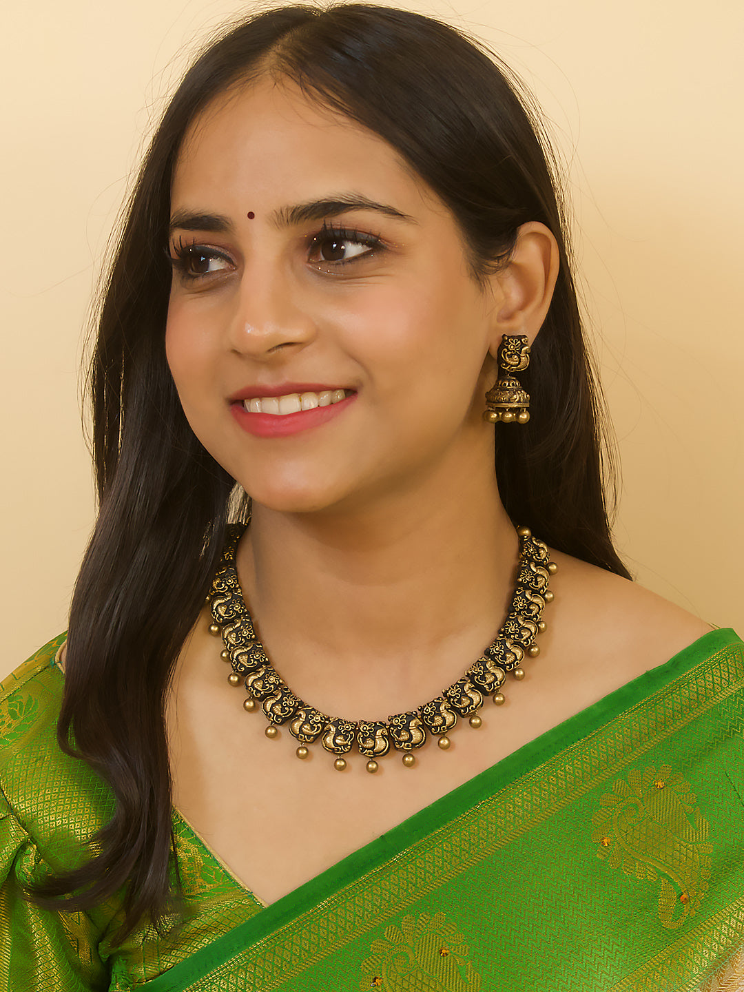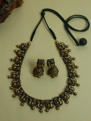 Antique Gold Peacock Design Handmade Terracotta Necklace Set