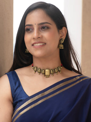 Antique Gold Peacock Design Rectangular Victorian Choker Handmade Terracotta Necklace Set