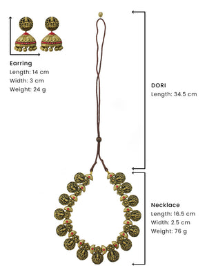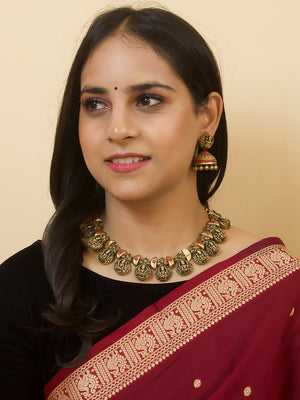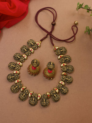 Antique Gold Pink Lakshmi Coin Floral Design Handmade Terracotta Necklace Set