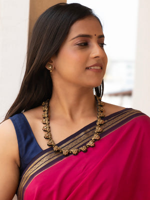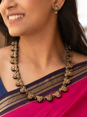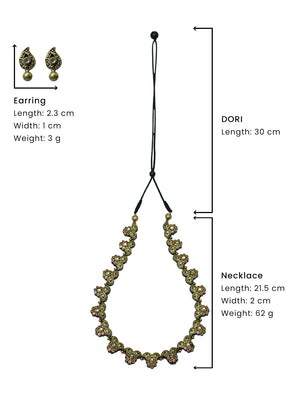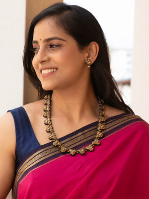Antique Gold Pink Mango Style Floral Design Handmade Terracotta Necklace Set