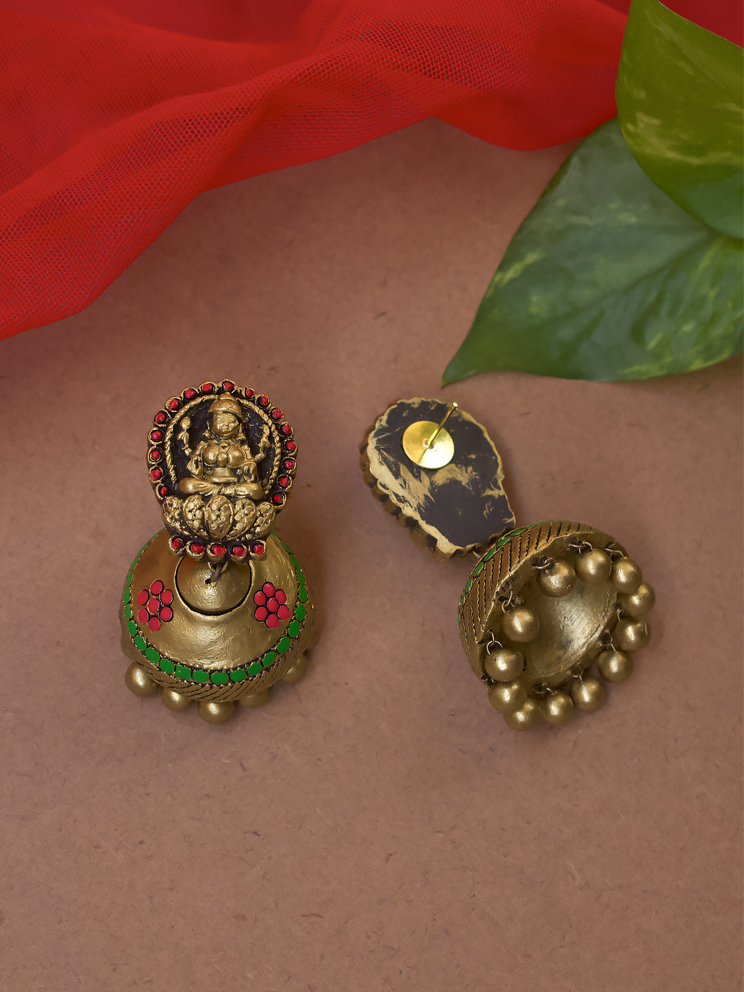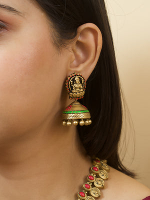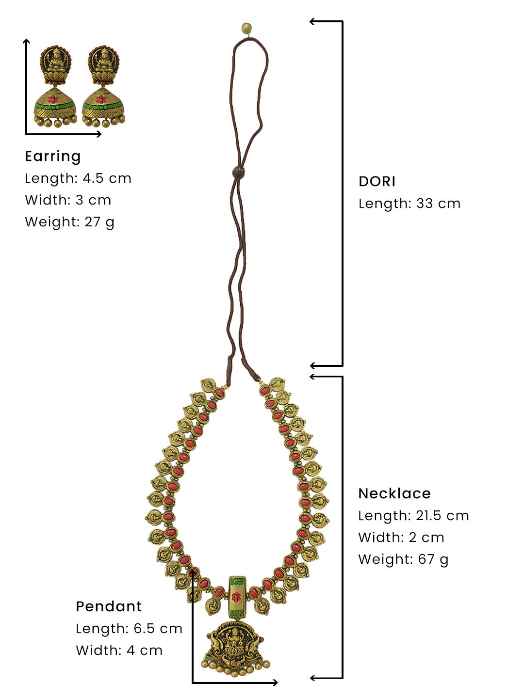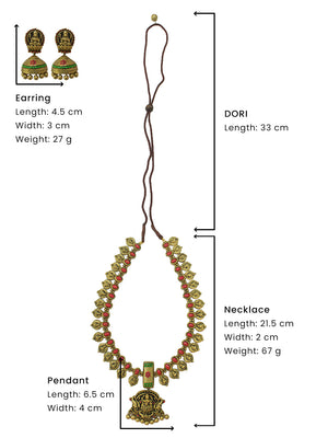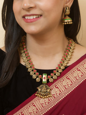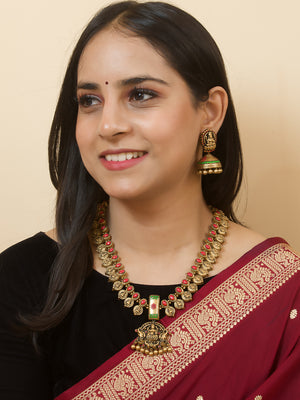 Antique Gold Red Green Lakshmi Coin and Oval Design Handmade Terracotta Necklace Set
