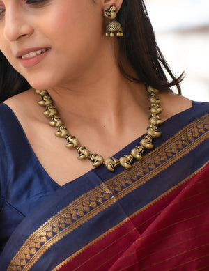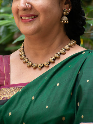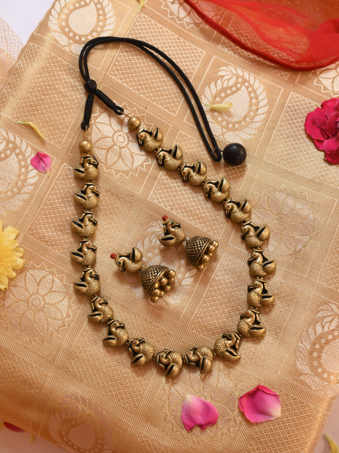 Antique Gold Red Green Peacock Design Handmade Terracotta Necklace Set